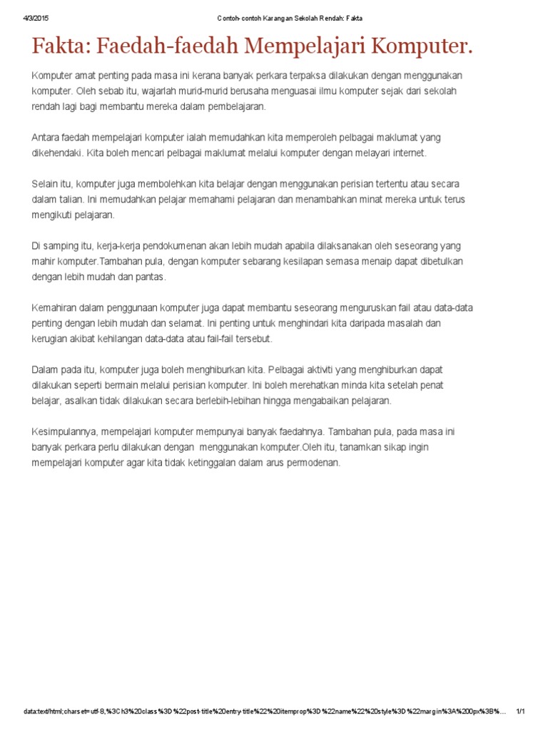 Antaranya adalah kemahiran menaip, melukis, mengarang dan sebagainya. Pdf integrasi teknologi maklumat dan komunikasi dalam pendidikan. Penggunaan internet lebih banyak membawa kebaikan daripada keburukan. Contoh karangan jenis fakta 1 cute766. Kini boleh dikatakan ramai dalam kalangan murid sekolah telah mahir dalam.